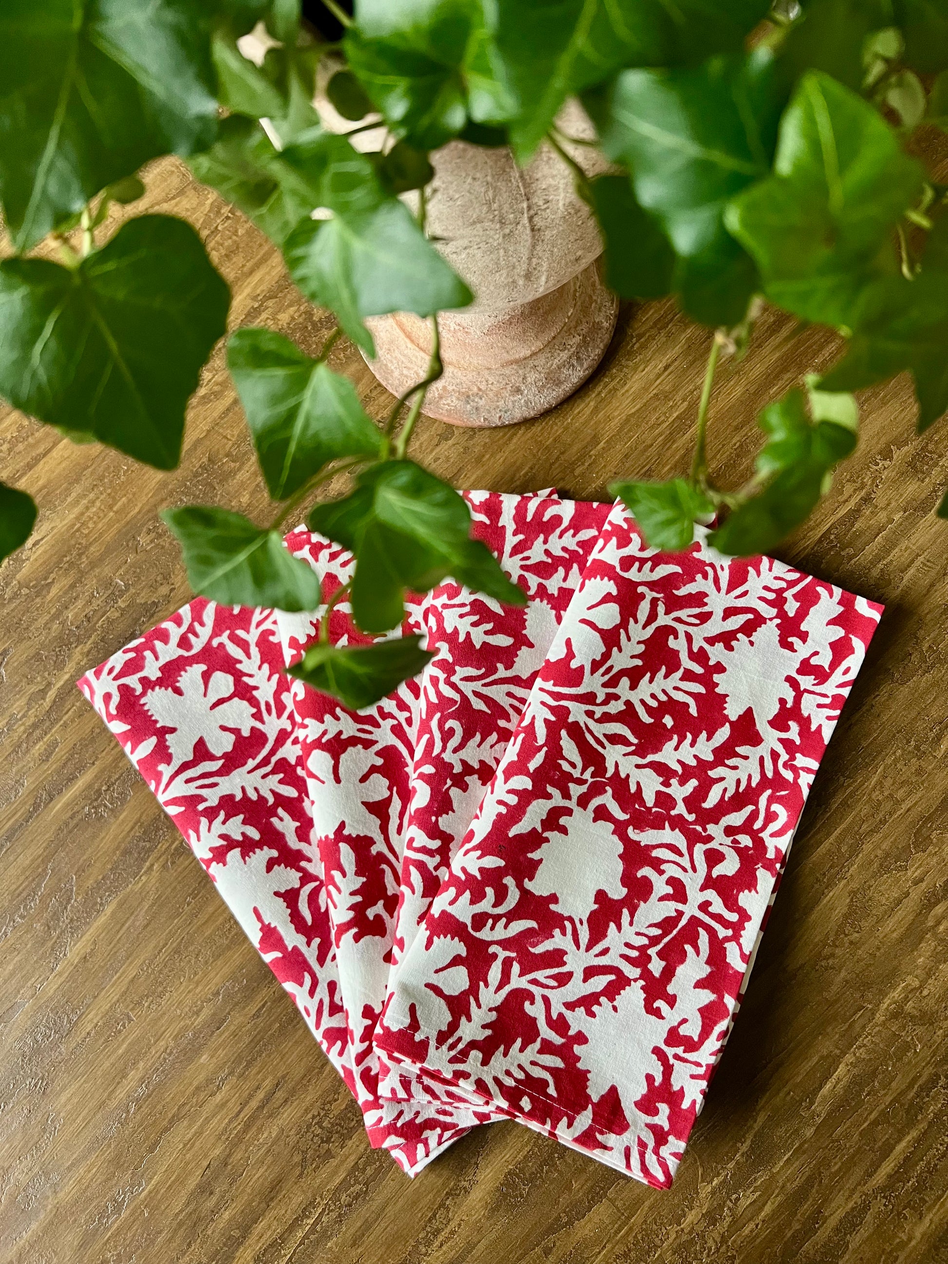 Pressed Florals Napkins in Cherry Red- Set of 4
